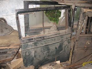 Looks promising. Nice and clean wooden spoke wheels. I think this is the only one that's together. These lights are not the stock ones. They're mid 30's or so.